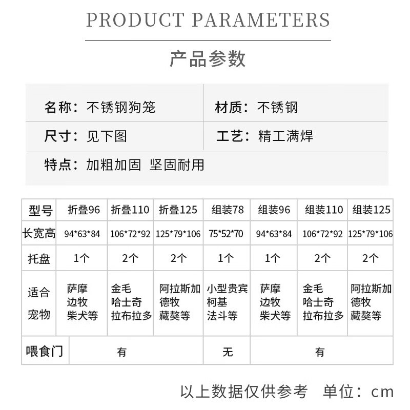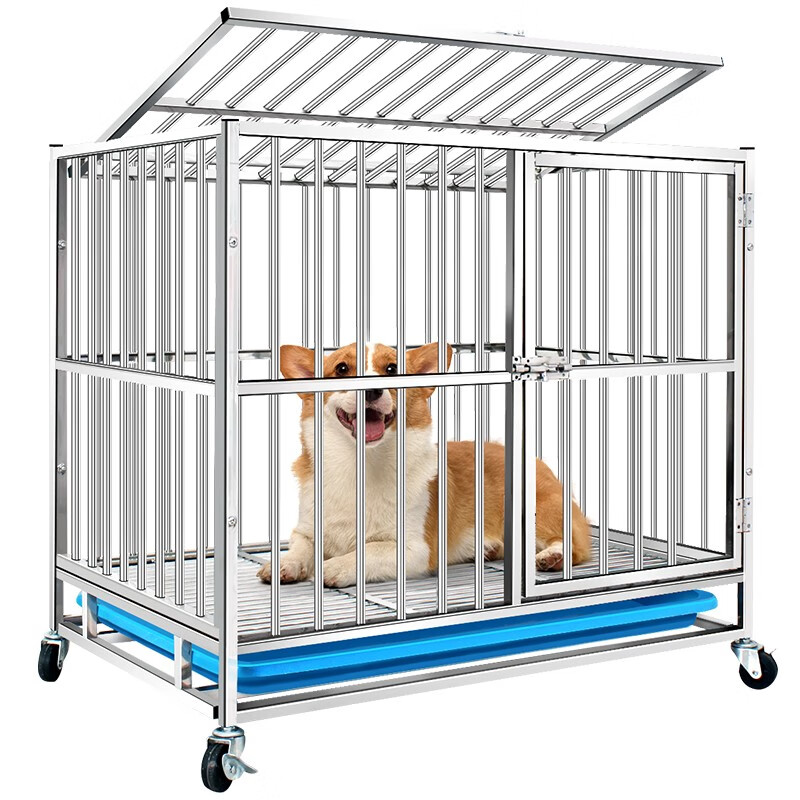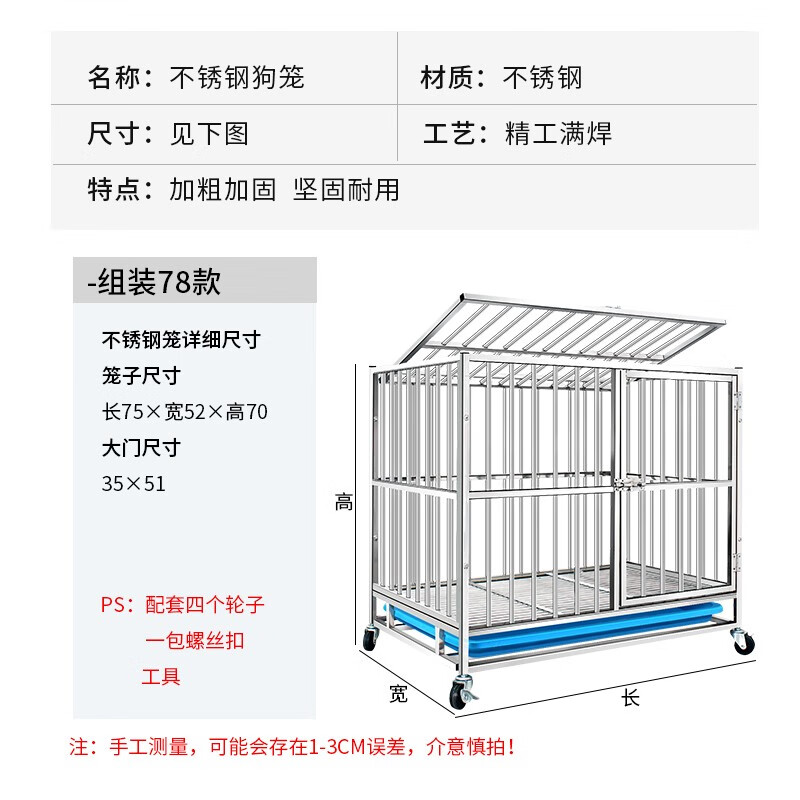 憨憨宠 【氩弧焊满焊】不锈钢狗笼中型小型犬狗笼子猫笼宠物狗狗笼子狗屋金毛拉布拉多柯基法斗用品 组装款-长75*宽52*高70cm(不带喂食小门)
