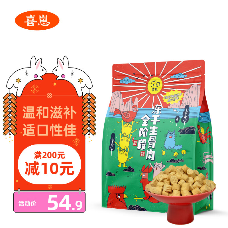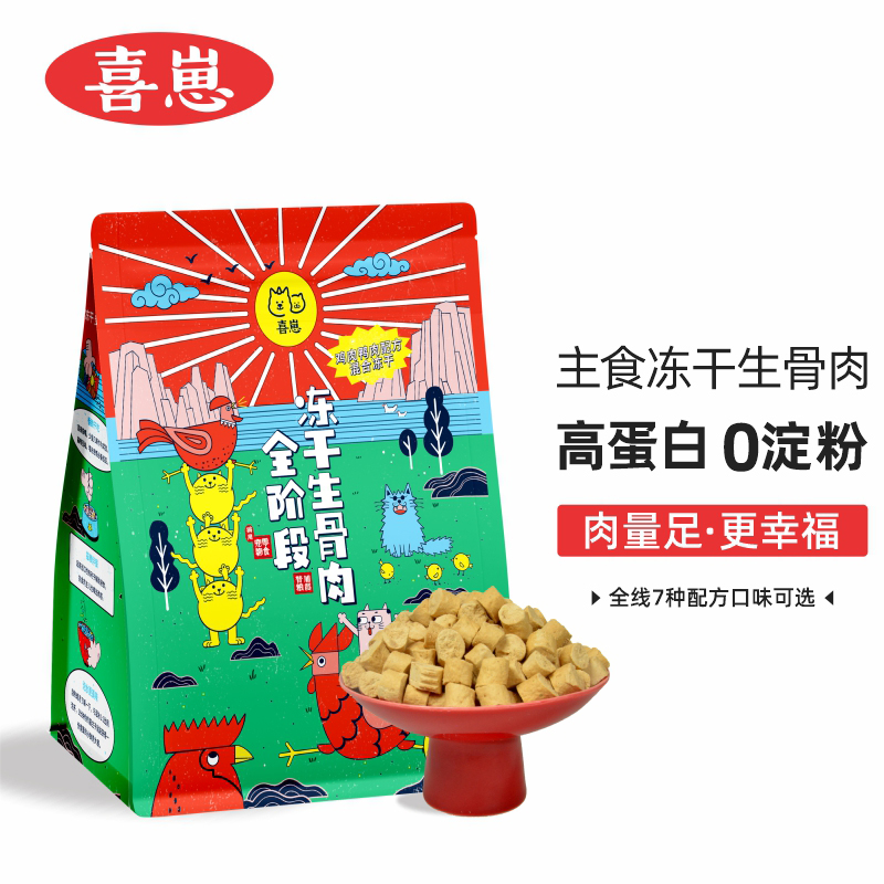 喜崽 主食冻干猫粮生骨肉高蛋白宠物猫零食全价成猫幼猫通用 110g
