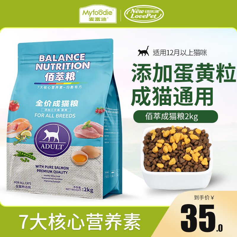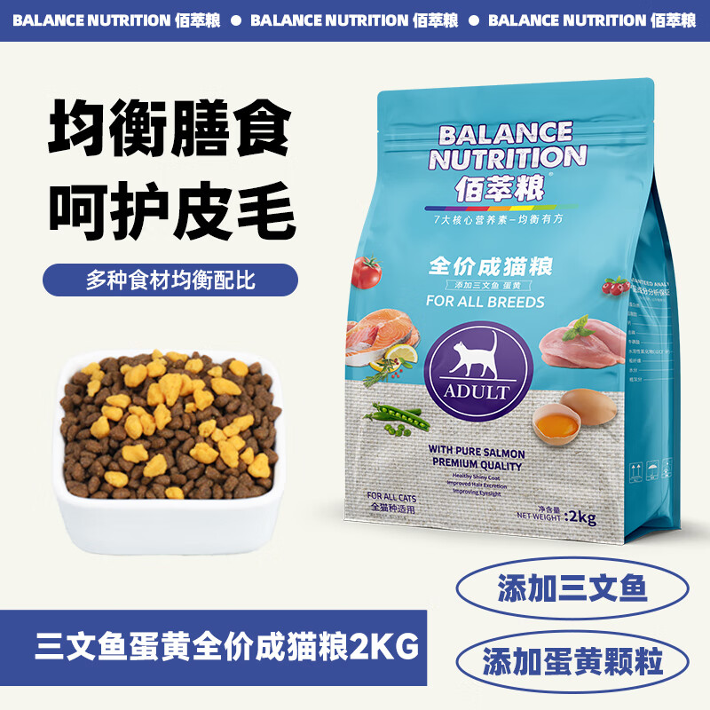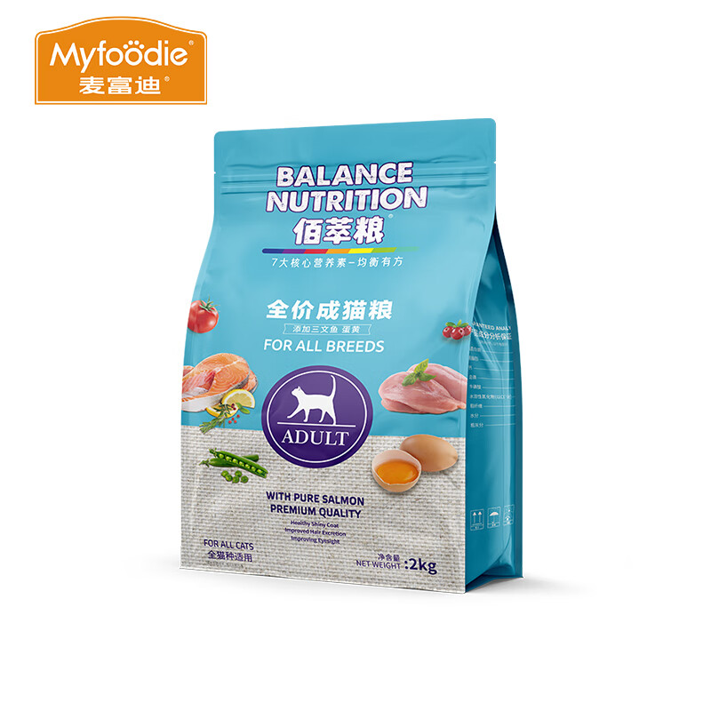 麦富迪佰萃猫粮 蓝猫美短英短布偶通用型天然粮 (三文鱼蛋黄)成猫粮2kg