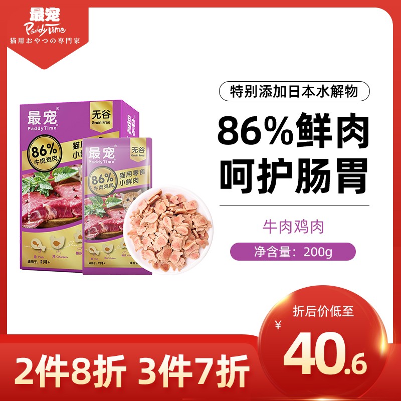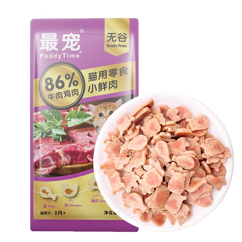 澳洲品牌 最宠(Paddy time)猫零食小鲜肉饼干 猫草薄荷去毛球泌尿健康拌粮湿粮包小鱼肉饼干宠 牛肉鸡肉200g