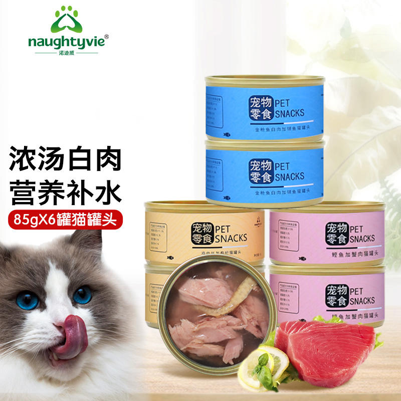 诺迪威(naughtyvie)白肉猫罐头85g*6 浓汤混合口味 猫湿粮猫咪零食罐头 成猫幼猫猫粮