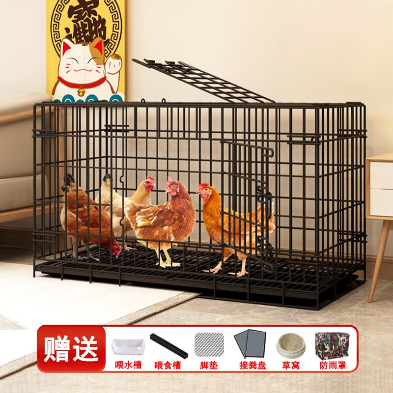 邦可臣鸡笼子家用养鸡笼特大号自动清粪折叠养殖笼鸡舍铁丝网鸭猫狗笼 单笼套餐 草窝 防雨盖 60*43*50【适合1-2只】