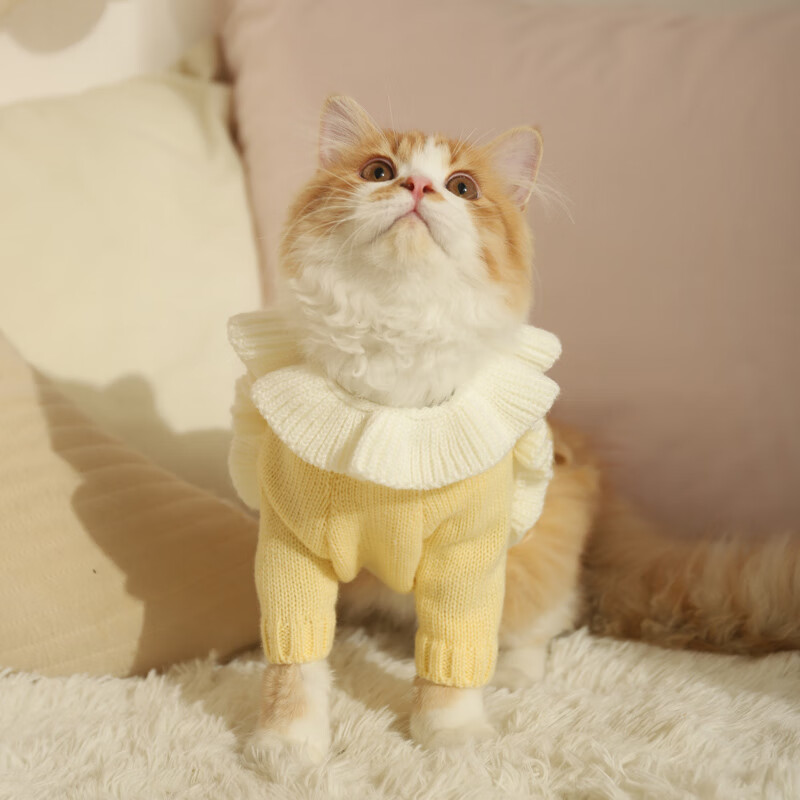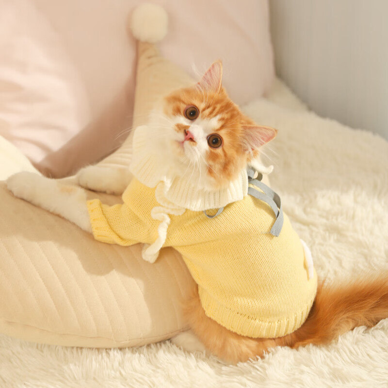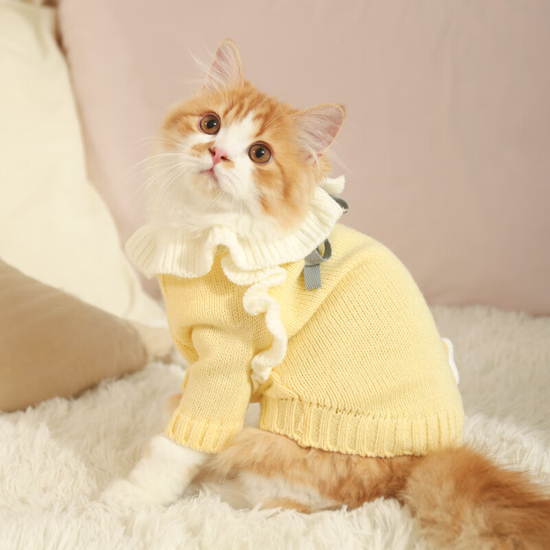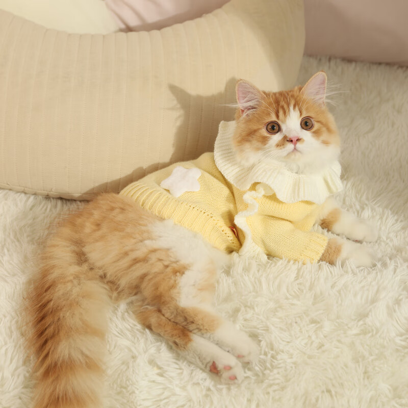 殊福傢猫咪衣服冬季保暖布偶猫蓝猫秋装宠物猫猫小猫幼猫防掉毛秋天毛衣 黄色-毛绒小星星毛衣 M:胸围39cm-建议6-9斤