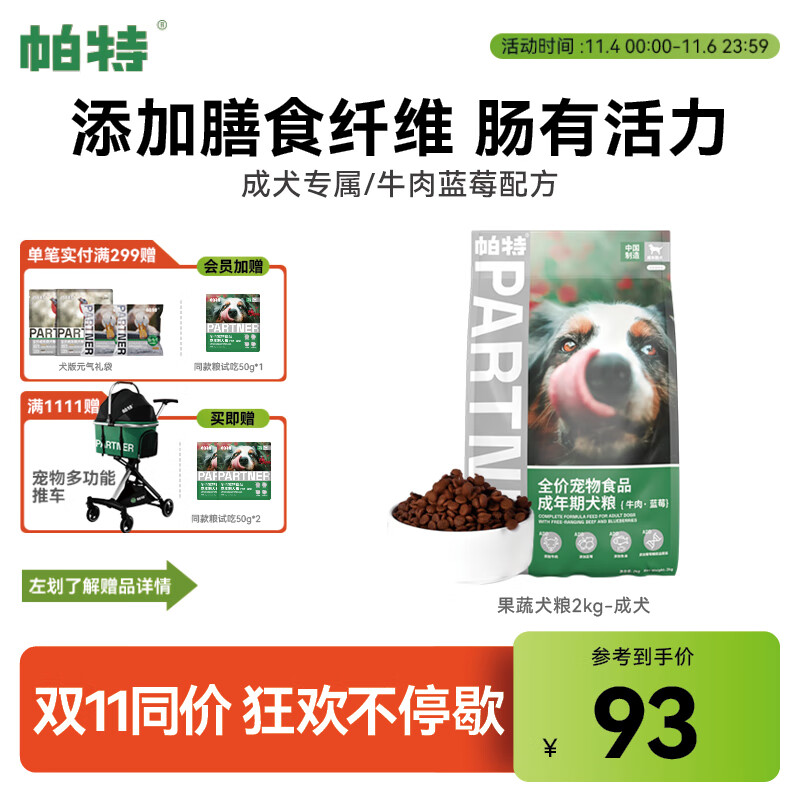 帕特【果蔬系列】犬粮成幼犬通用型调理蓝莓牛肉火鸡全价狗粮2kg/12kg 成犬-蓝莓牛肉-2kg 果蔬配方-缓解便臭