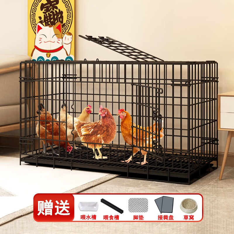 邦可臣鸡笼子家用养鸡笼特大号自动清粪折叠养殖笼鸡舍铁丝网鸭猫狗笼 单笼套餐 草窝 60*43*50【适合1-2只】