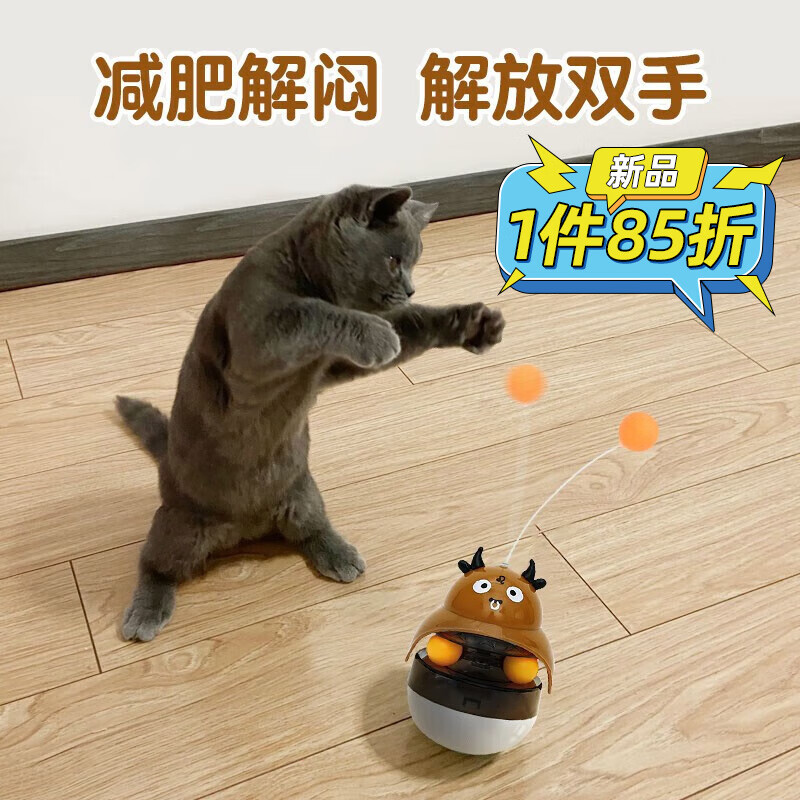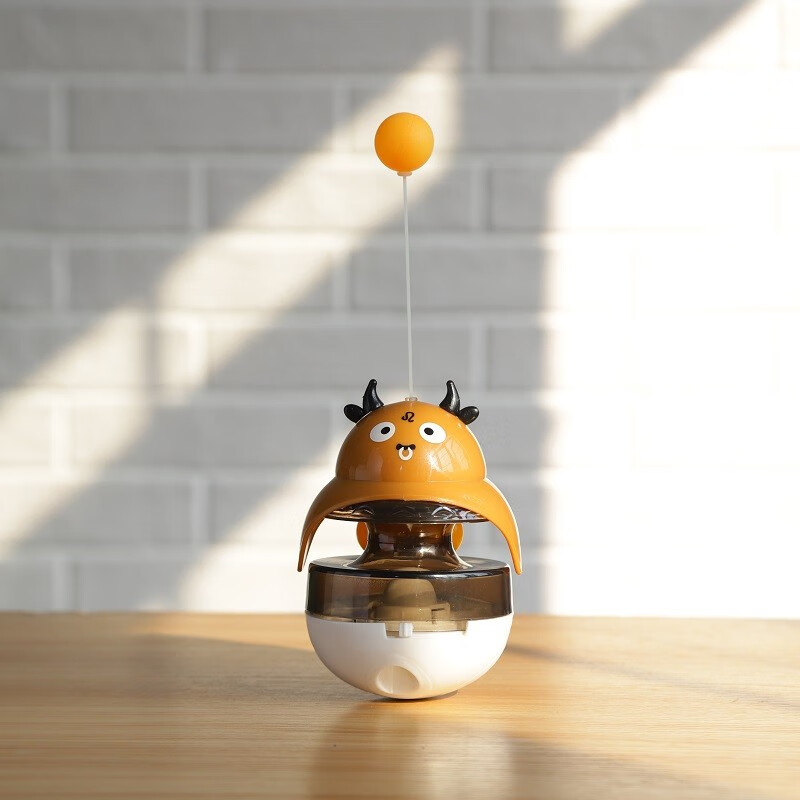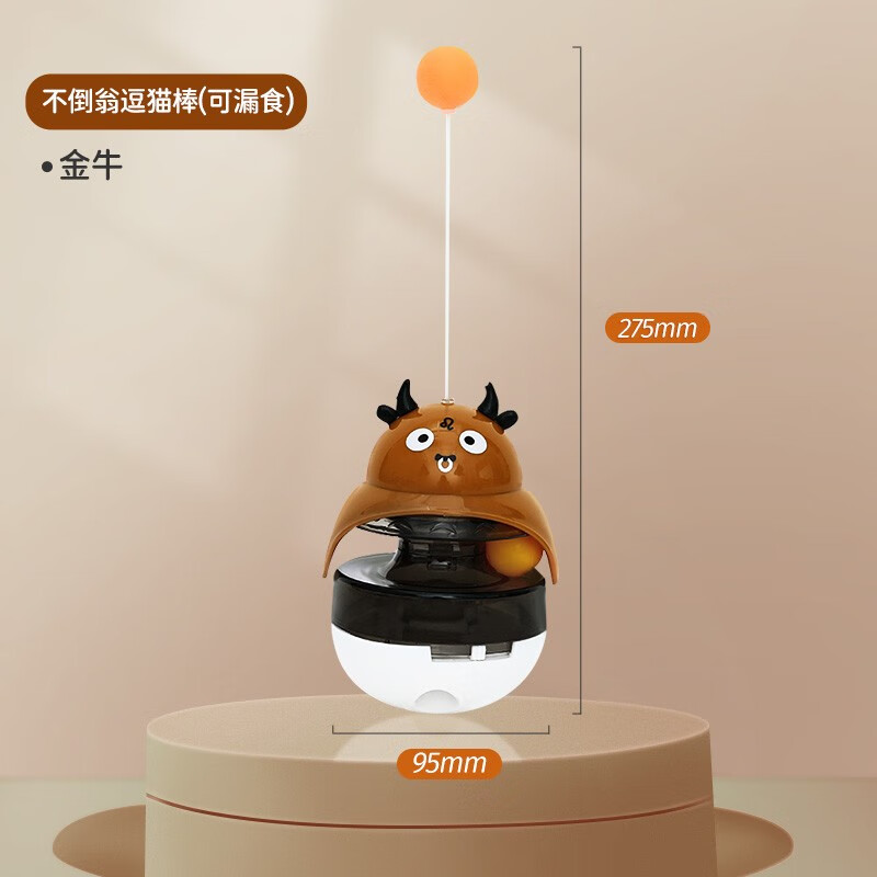 hoopet 猫玩具自嗨不倒翁解闷神器逗猫棒猫转盘小猫漏食球猫猫小球玩具自动逗猫宠物猫咪用品 金牛不倒翁