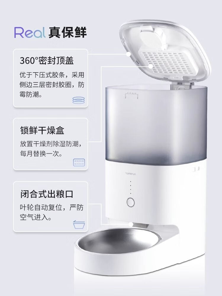 霍曼(Homerun)喂食器Real自动喂食器猫咪定时定量智能宠物猫粮狗粮投喂 智能喂食器(配不锈钢碗)