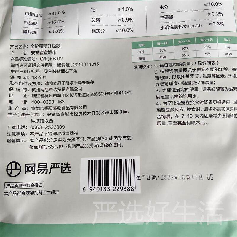 【新品】网易严选猫3.0新配方全价猫粮全价膨化粮1.8kg主粮成幼猫