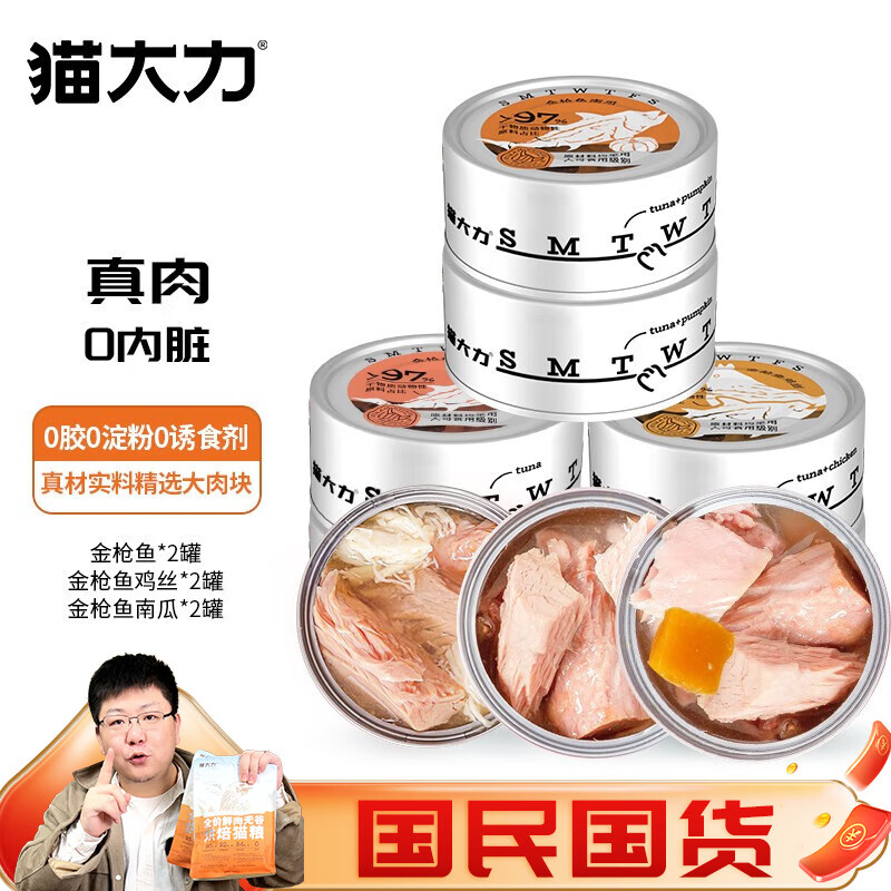 猫大力猫罐头整箱补水成幼猫全价通用浓汤大块肉营养增肥零食营养罐头 金枪鱼2金枪鱼南瓜2鸡丝2