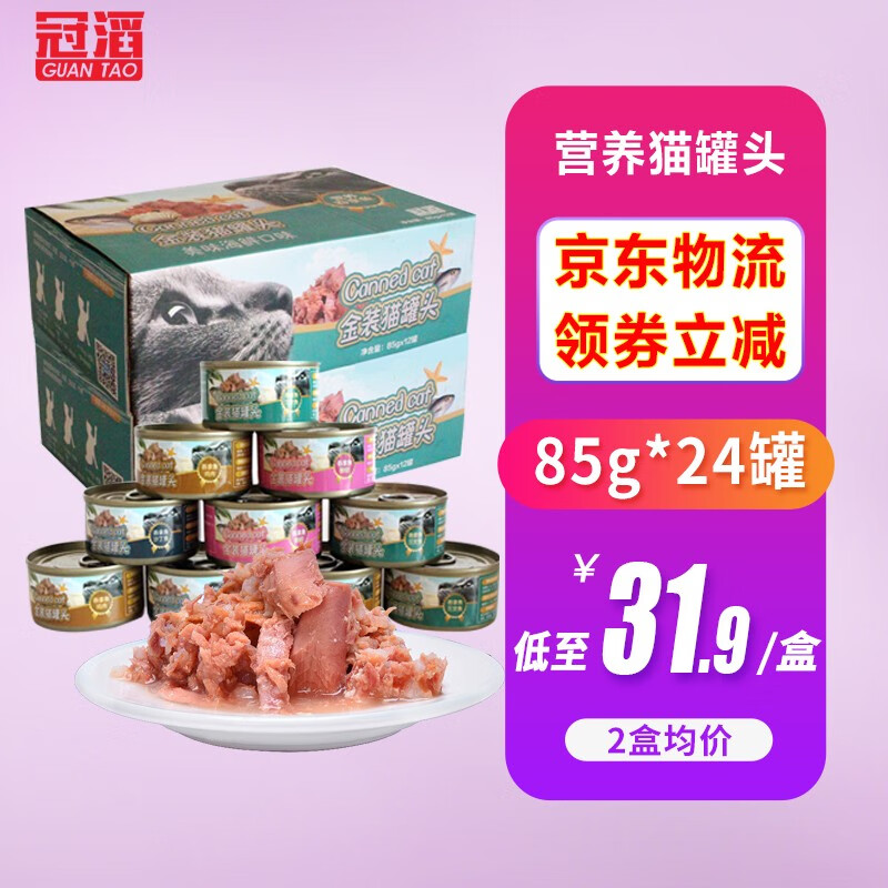 冠滔金装猫罐头猫粮幼猫成猫湿粮拌饭猫零食85g*12罐 85gx24罐(4种口味)