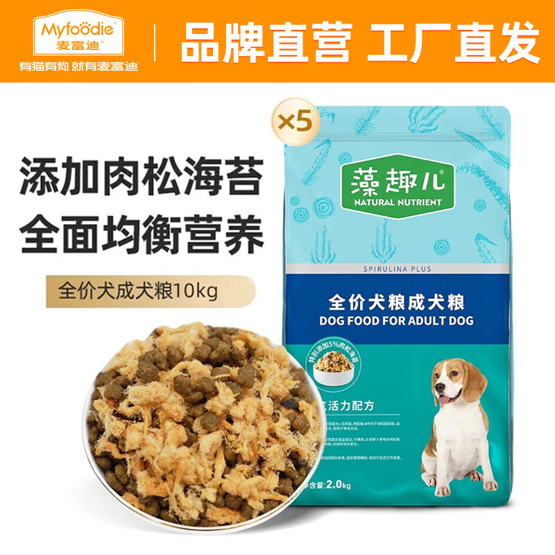 麦富迪 肉松狗粮 藻趣儿通用全价肉松粮全新升级肉松海苔款 成犬粮10kg