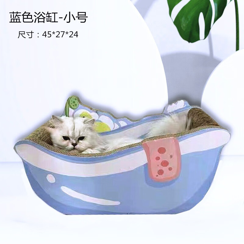 猫抓板隧道猫窝一体瓦楞纸耐抓不掉屑多功能玩具猫爪板盆猫咪用品 蓝色浴缸-小号