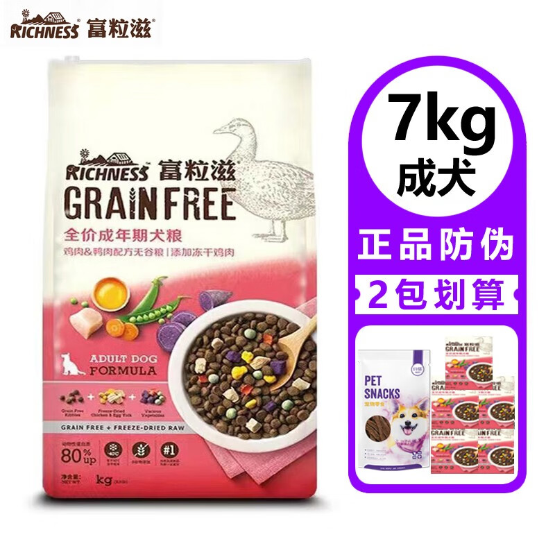 富粒滋冻干狗粮鸡肉冻干蛋黄无谷颗粒全价营养犬粮 鸡肉鸭肉(成犬7kg)