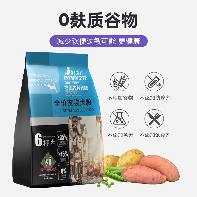 狼孩儿狼孩儿冻干无谷狗粮成犬幼犬中小型犬老年犬多肉无谷全价宠物犬粮 无谷狗粮一斤装(纯粮)