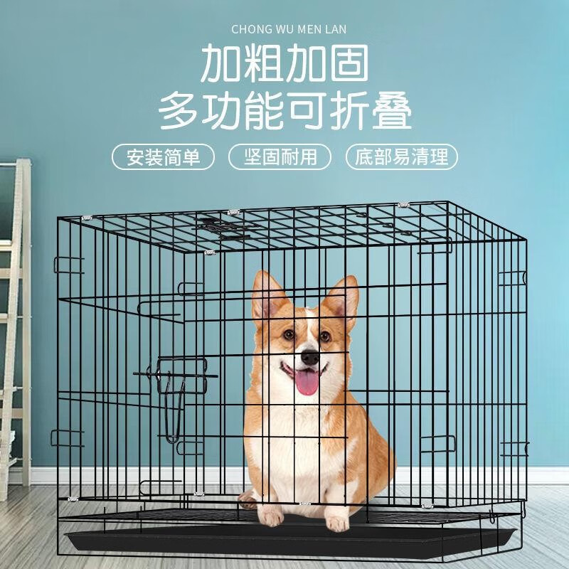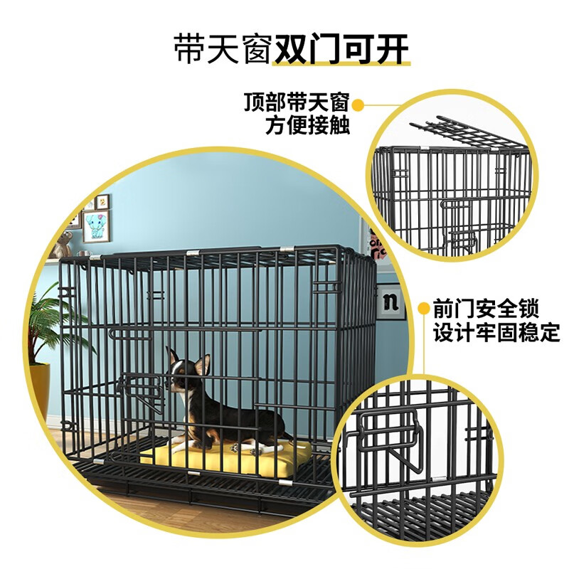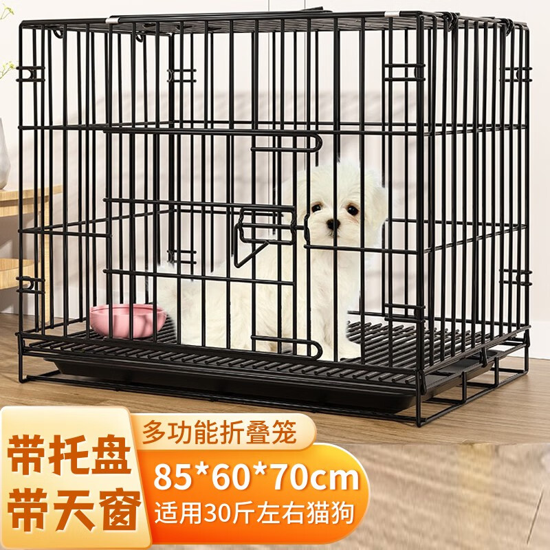 共度(Gong Du)猫笼 狗笼大小型宠物 可折叠 室内栅栏家用宠物围栏铁丝笼 黑色850丝【带天窗带托盘】