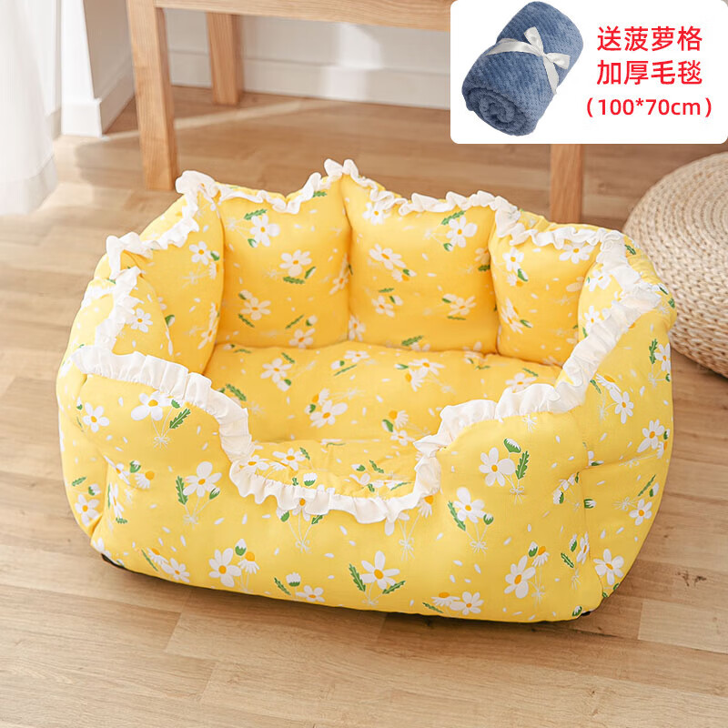 嬉皮狗猫窝保暖狗窝小型犬狗狗床四季通用猫窝非可拆洗泰迪宠物用品 黄色小花四季(搭配毛毯) 大号-30斤内狗狗多只猫咪