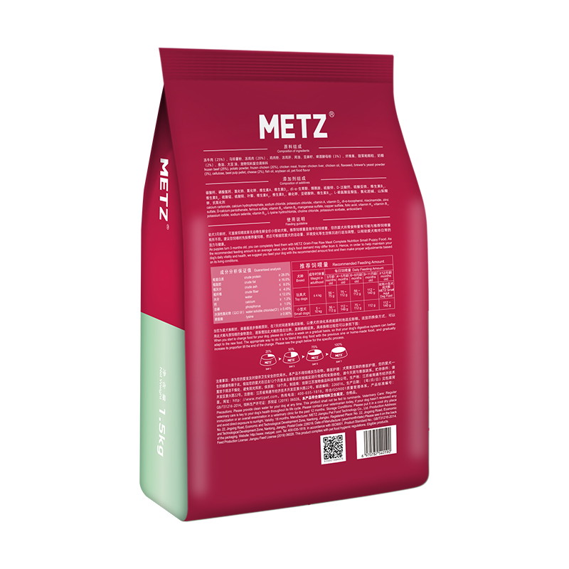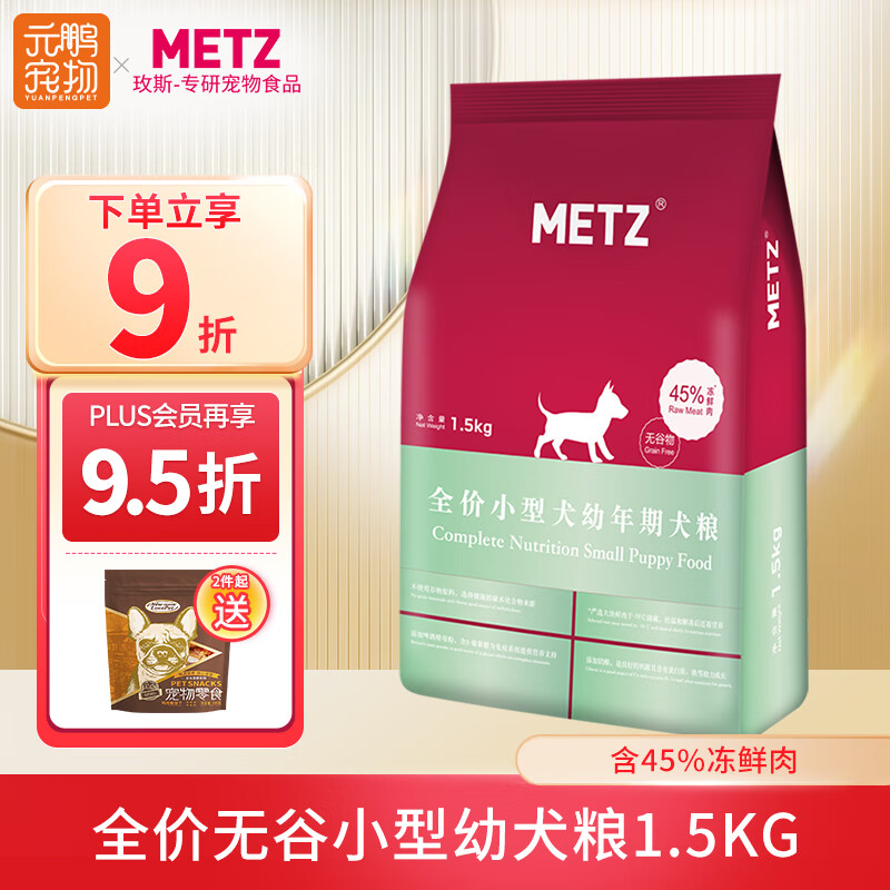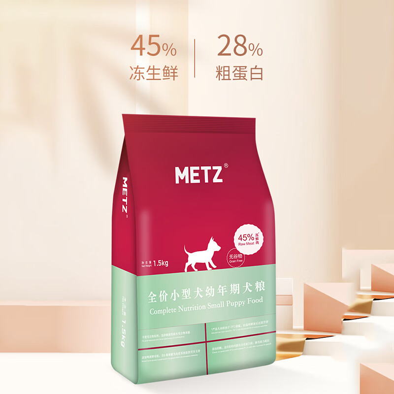 玫斯(metz)狗粮 小型成犬幼犬泰迪博美法斗通用型无谷粮 小型犬幼犬粮1.5kg