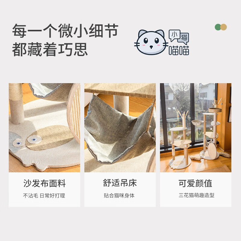 小猫喵喵 猫爬架实木大型猫咪猫抓板一体式猫架猫树猫跳台剑麻猫窝 升级款