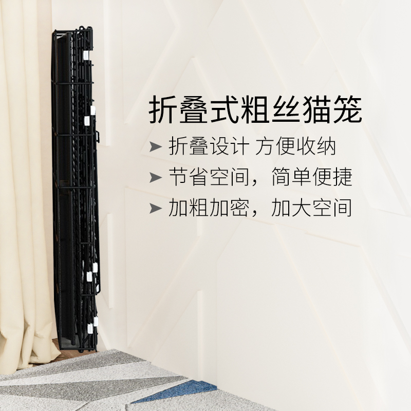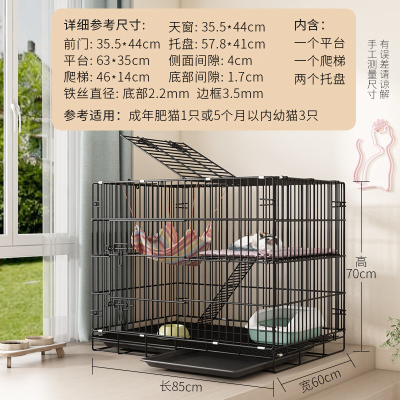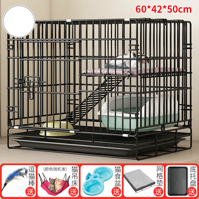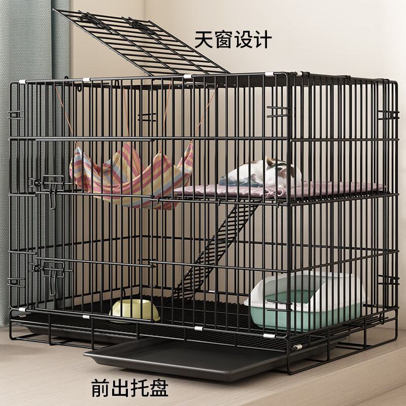 络诺猫笼猫窝加粗折叠猫笼子猫舍猫房子猫屋宠物笼子围栏85*60* 黑色双层 长60宽42高50cm