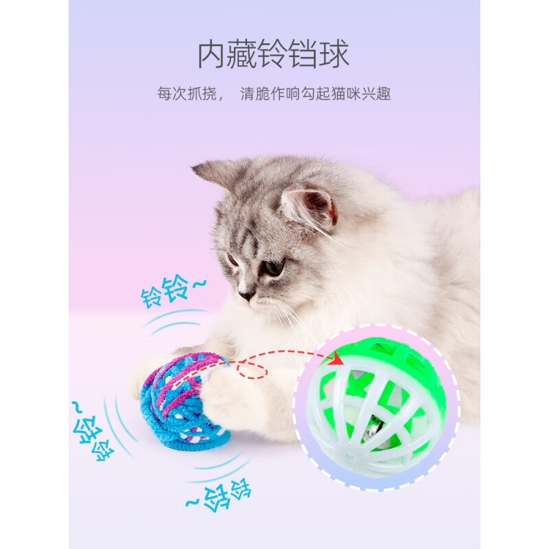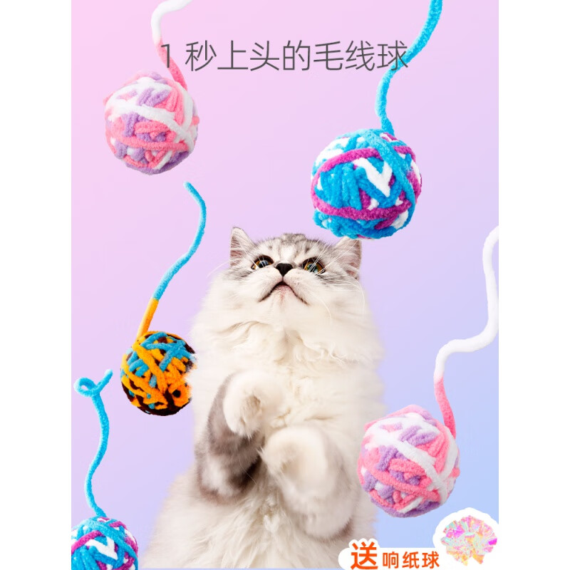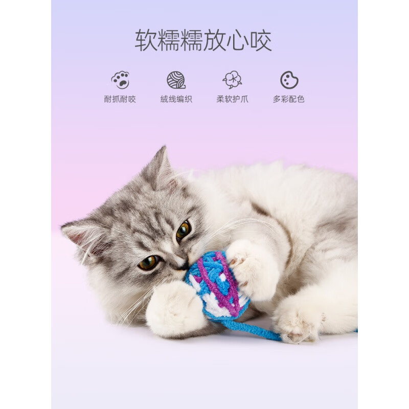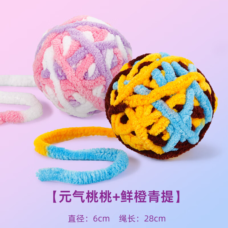 英短猫玩具毛线球逗猫球毛绒自嗨解闷磨牙耐咬逗小猫神器逗猫棒用品 元气桃桃 鲜橙青提