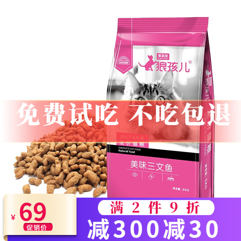 狼孩儿猫粮10kg幼猫粮成猫粮20kg公斤装室内家猫猫流浪英短美短加菲猫波斯折耳猫粮5kg 10kg(美味三文鱼20斤装)