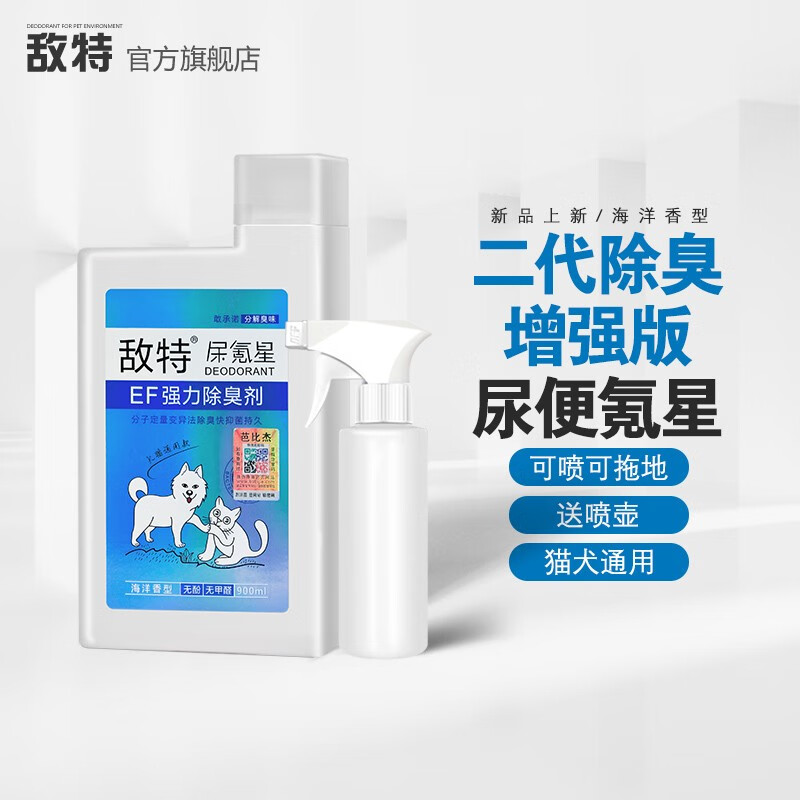 敌特尿氪星宠物除臭剂狗狗尿液猫尿去味分解室内猫咪除尿骚900ml 屎克星海洋味(带喷壶) 900ml