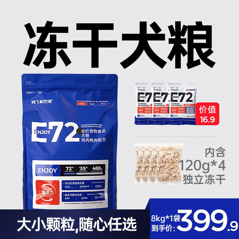 阿飞和巴弟【老爸抽检】E72全价冻干狗粮无谷大中小型犬成犬幼犬通用狗粮 【中大型犬】1袋装8kg送180g