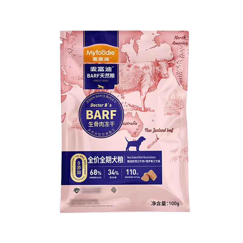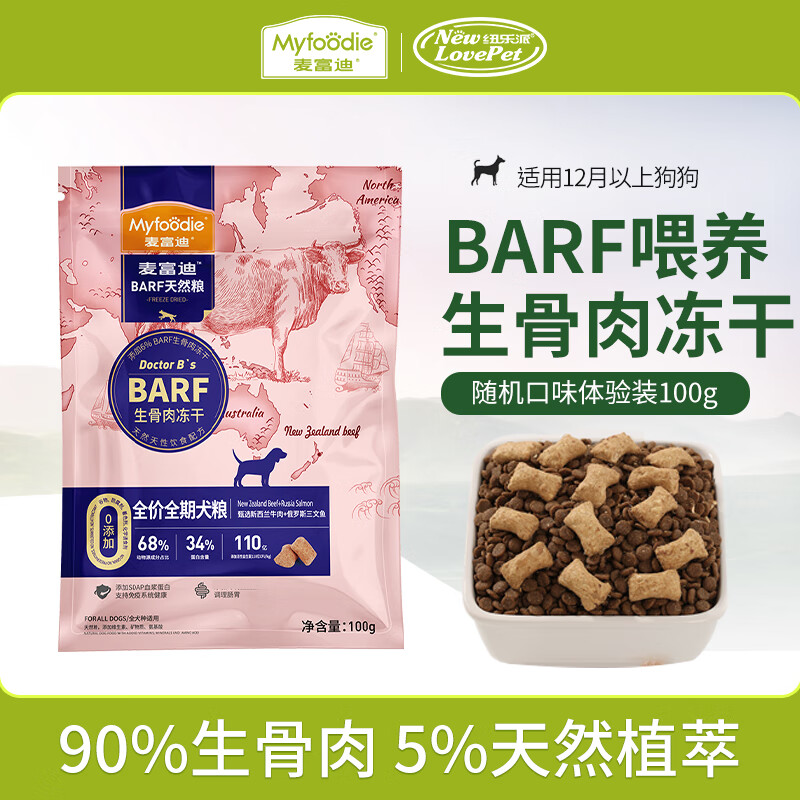 麦富迪狗粮 barf生骨肉冻干双拼通用型犬粮 体验装100g(口味随机)