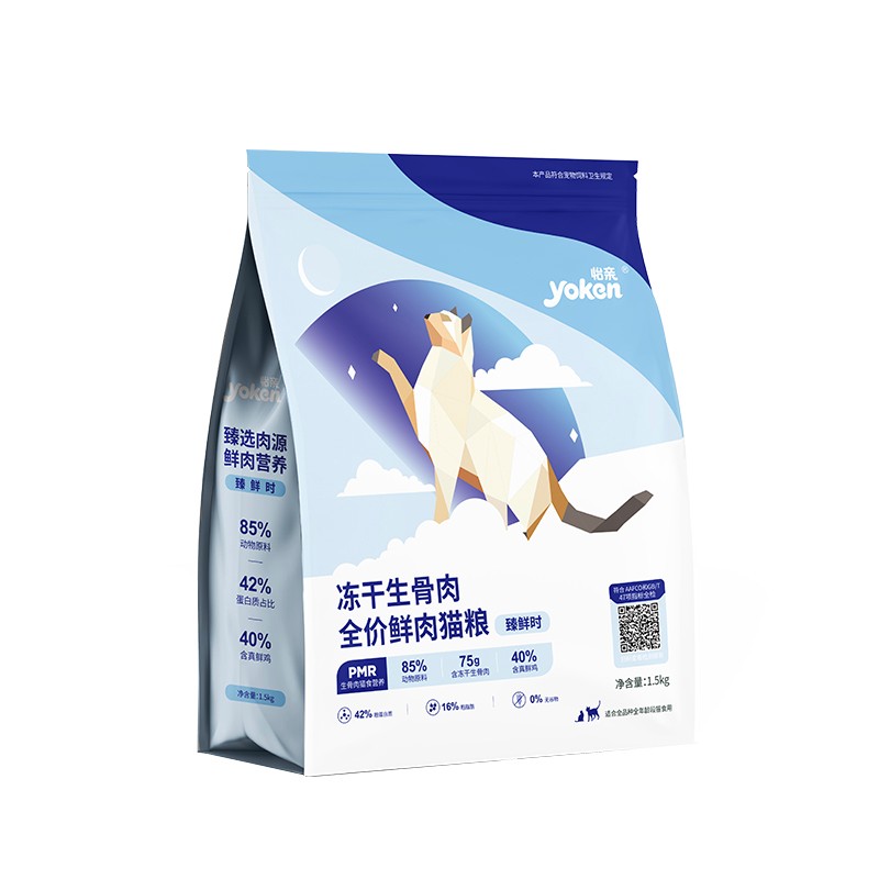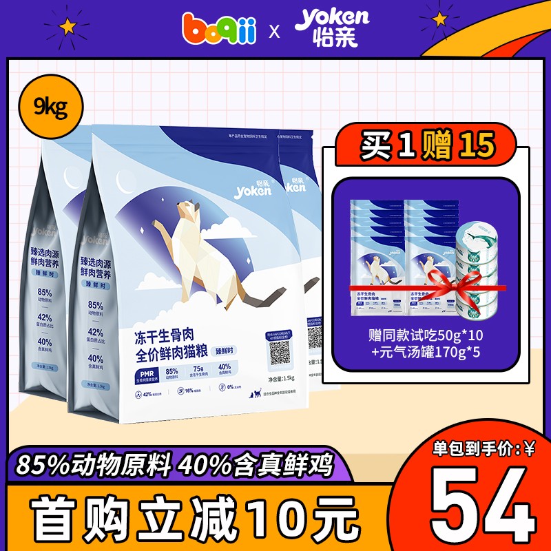 怡亲(Yoken) 冻干生骨肉猫粮 臻鲜时系列全价全期猫咪鲜肉主粮 幼猫成猫老年猫通用 1.5kg*6