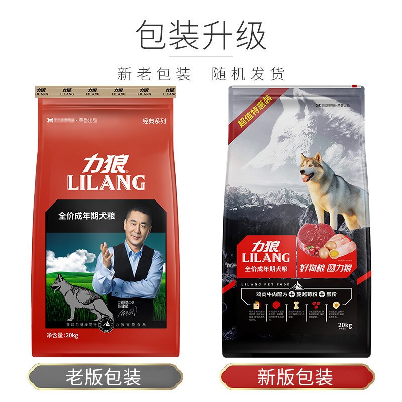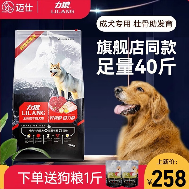 力狼 狗粮通用型40斤装金毛边牧萨摩拉布拉多中大型成犬狗粮榜 成犬粮20kg
