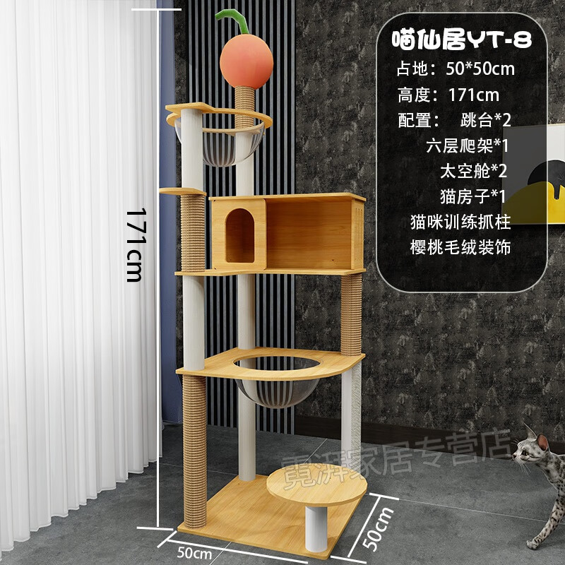 猫爬架子猫窝猫树一体实木猫抓板剑麻猫架笼子高层城堡跳台太空舱 【三口之家-乐居】喵仙居YT08
