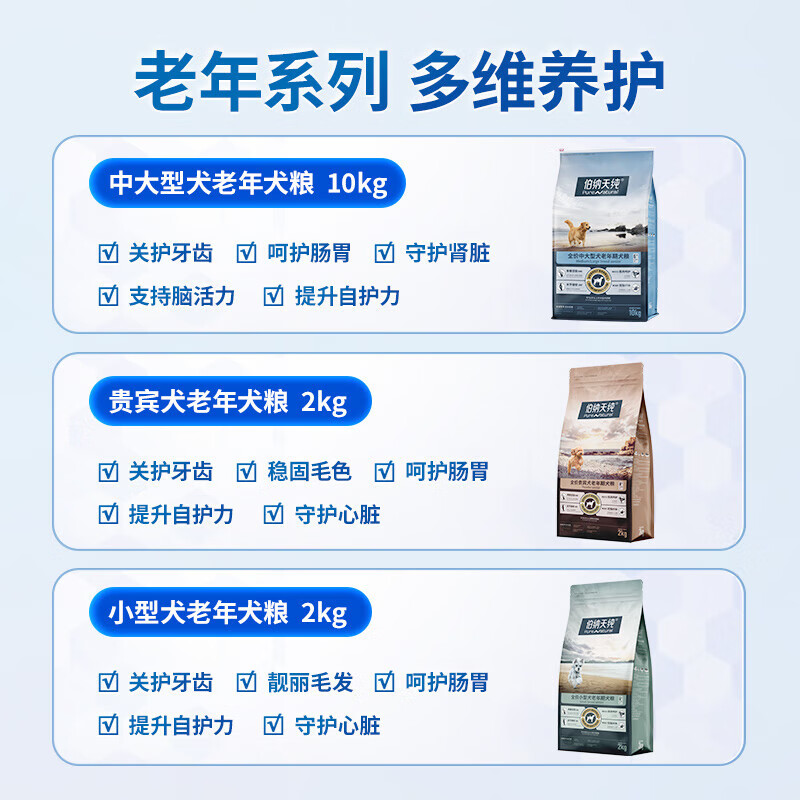 伯纳天纯狗粮老年犬专用 贵宾泰迪/小型犬/中大型犬全价老年狗粮 小型犬老年期8 2kg