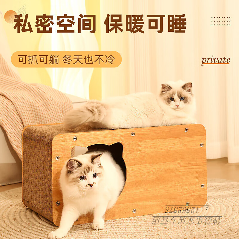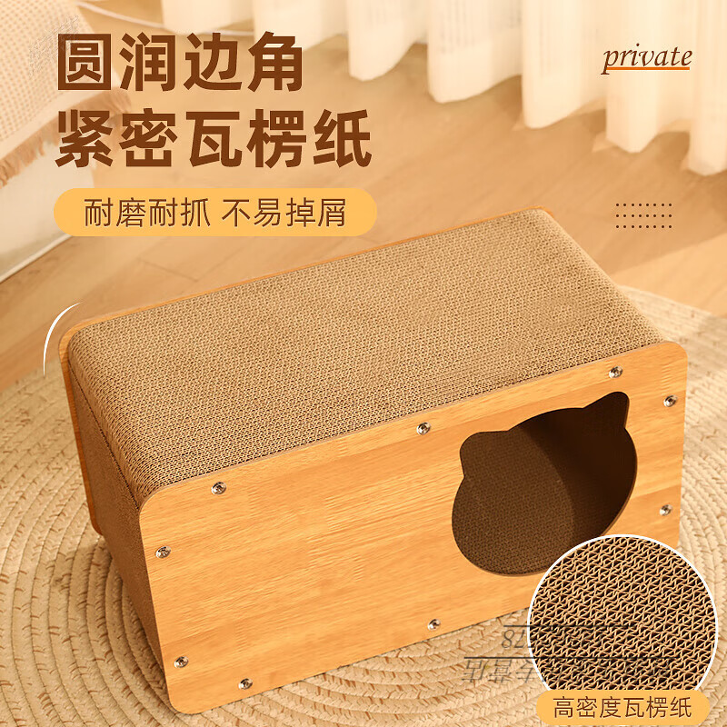 猫抓板一体猫窝纸箱耐磨耐抓不掉屑磨爪爬板四季通用猫咪玩具用品 猫头款猫洞猫抓板(经典款!)