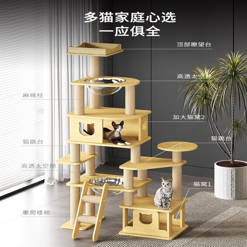 宠贝亚猫爬架猫窝猫树一体太空舱猫爬架子猫抓柱通天柱实木猫跳台 【萌喵乐园Y9】低价冲量升级