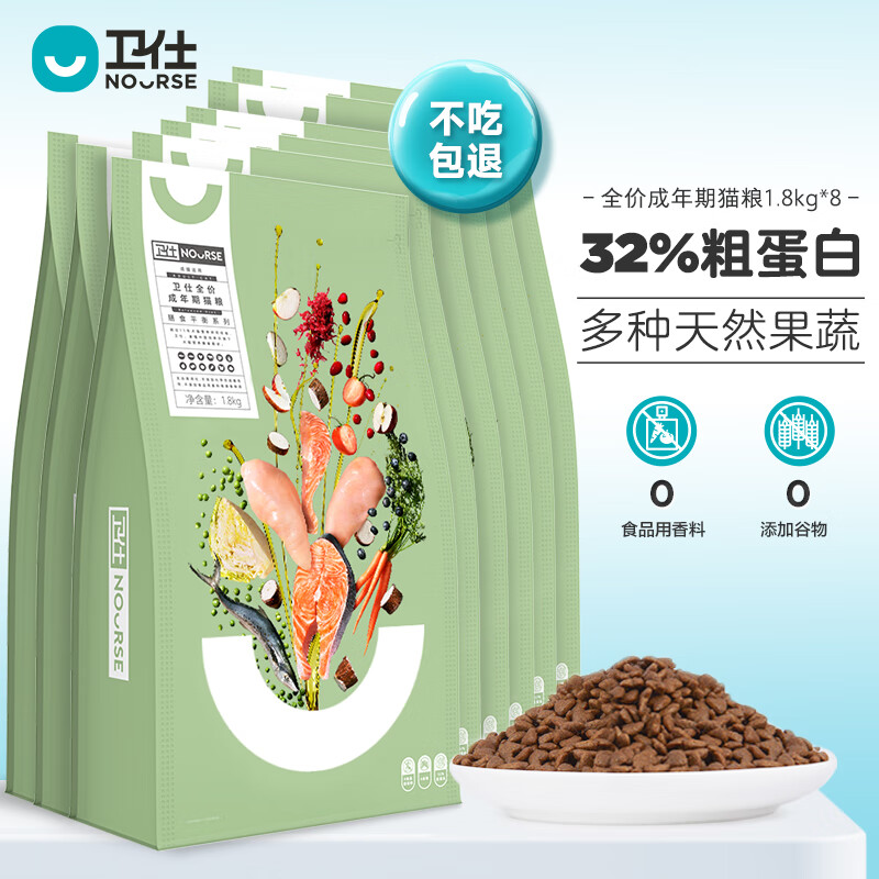 卫仕全价成猫猫粮 膳食平衡布偶英短卫士猫咪主粮1.8kg*8袋,共计14.4kg