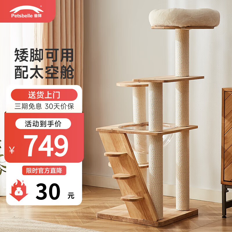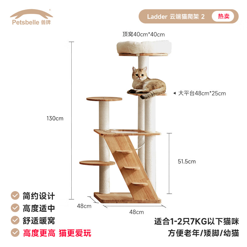 兽牌云梯实木猫爬架带窝太空舱小型不占地猫树猫架猫窝一体多层猫架子带窝飘窗可用矮脚猫幼猫适用猫玩具 130cm 6层 云梯·2丨更高更大