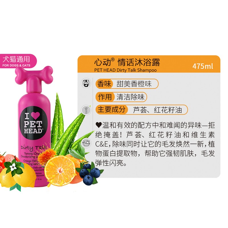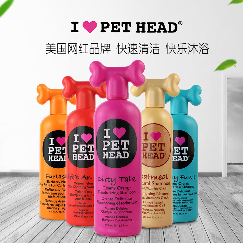 美国进口I PET HEAD心动 狗狗沐浴露 宠物除螨美毛洗澡香波浴液 护爪油 猫狗通用 网红沐浴露 清洁祛味(香橙味)475ml