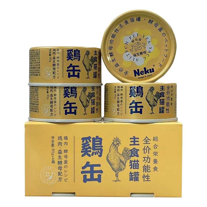 Neku呢酷全价玻尿酸功能性猫罐头主食猫湿粮鸡肉猫零食罐头成猫护肤美毛 主食罐益生酵母味85g*8罐