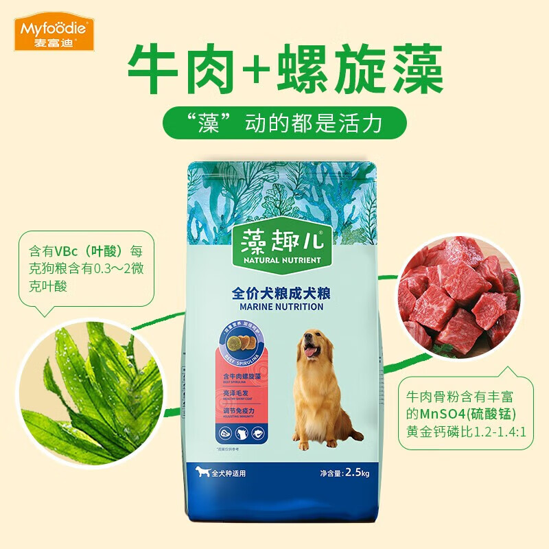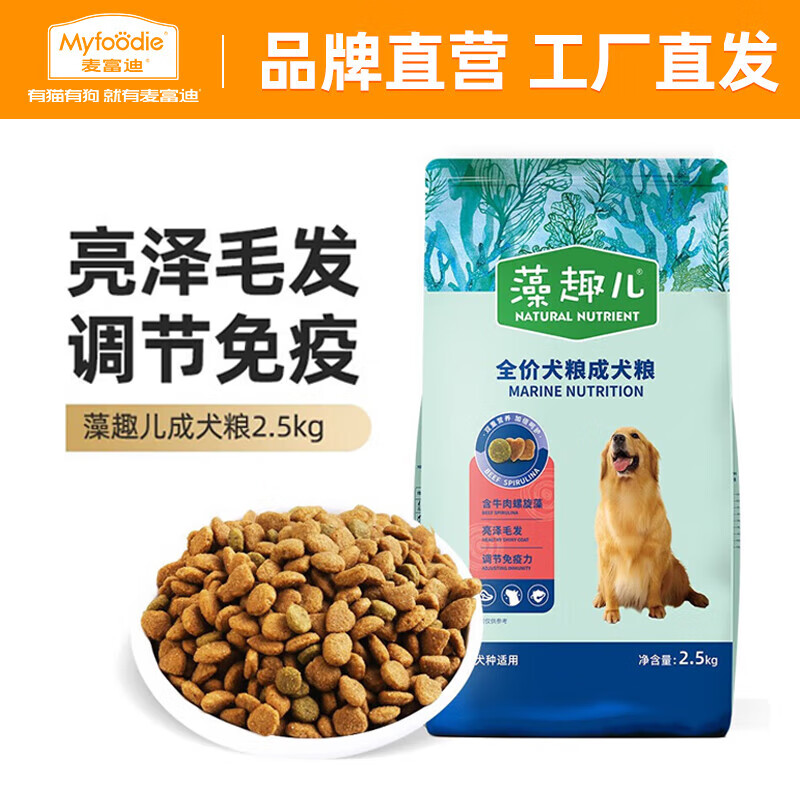 麦富迪 狗粮 藻趣儿通用全价犬粮小中大型犬泰迪柯基金毛拉布拉多 成犬粮2.5kg