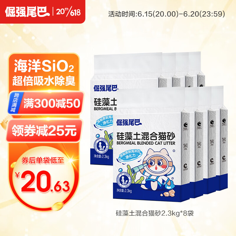 倔强的尾巴 硅藻土混合猫砂无尘除味除臭去味膨润土 2.3kg*8袋