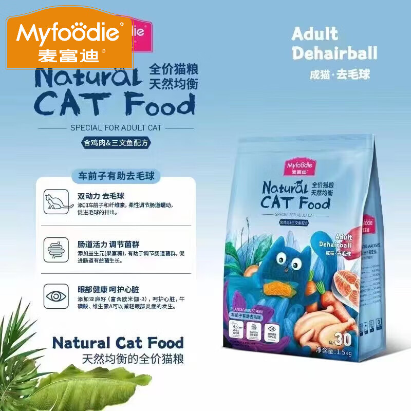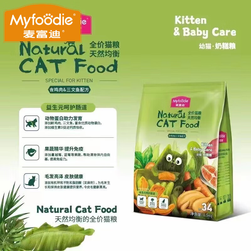 麦富迪(Myfoodie)麦富迪猫粮成猫幼猫通用去毛球美毛奶糕粮天然 幼猫奶糕12月龄以下 1.5kg 3斤