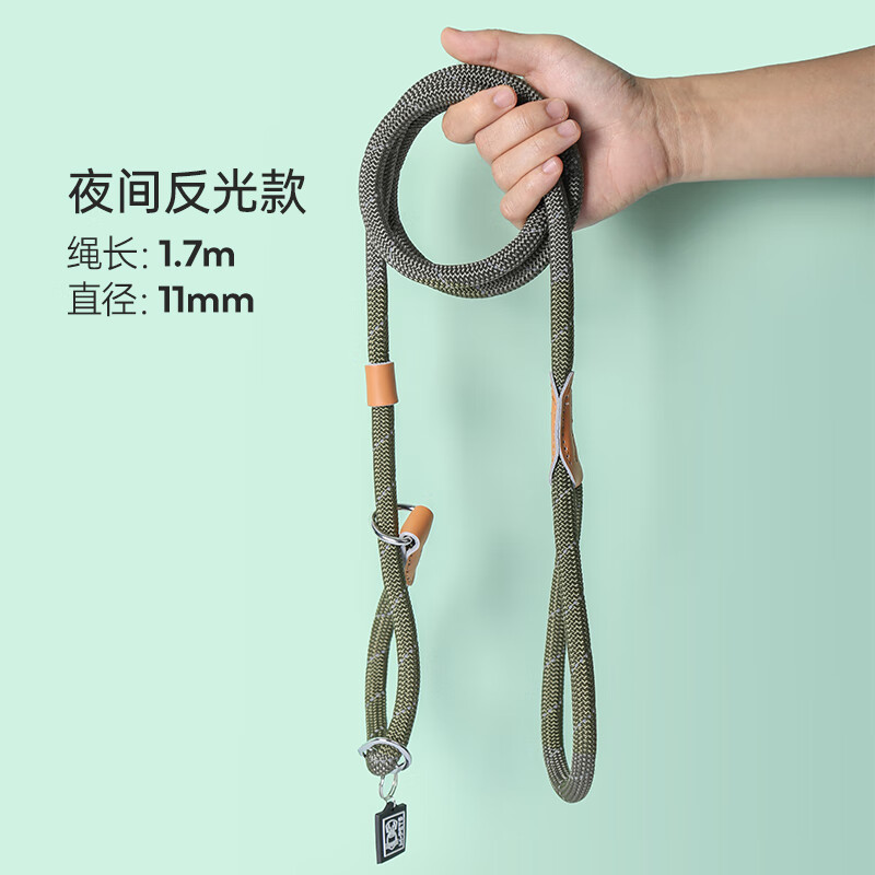 mpets狗狗牵引绳牵引狗绳p绳大型犬金毛p链狗绳子中小型犬柯基防爆冲遛狗链子 上海可发可配送 墨绿1.7m加厚【100斤内适用】夜间反光款
