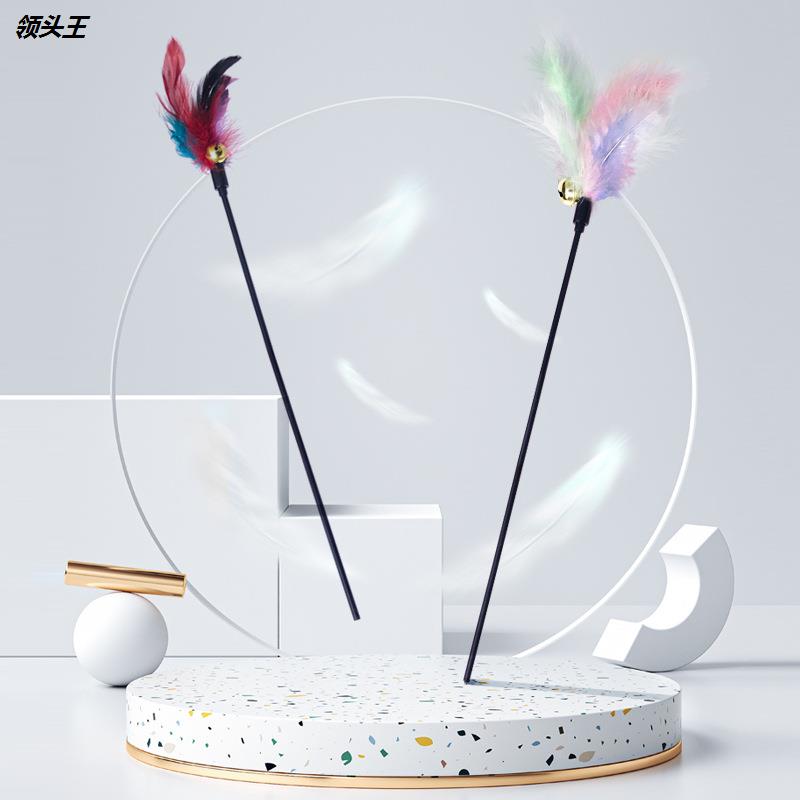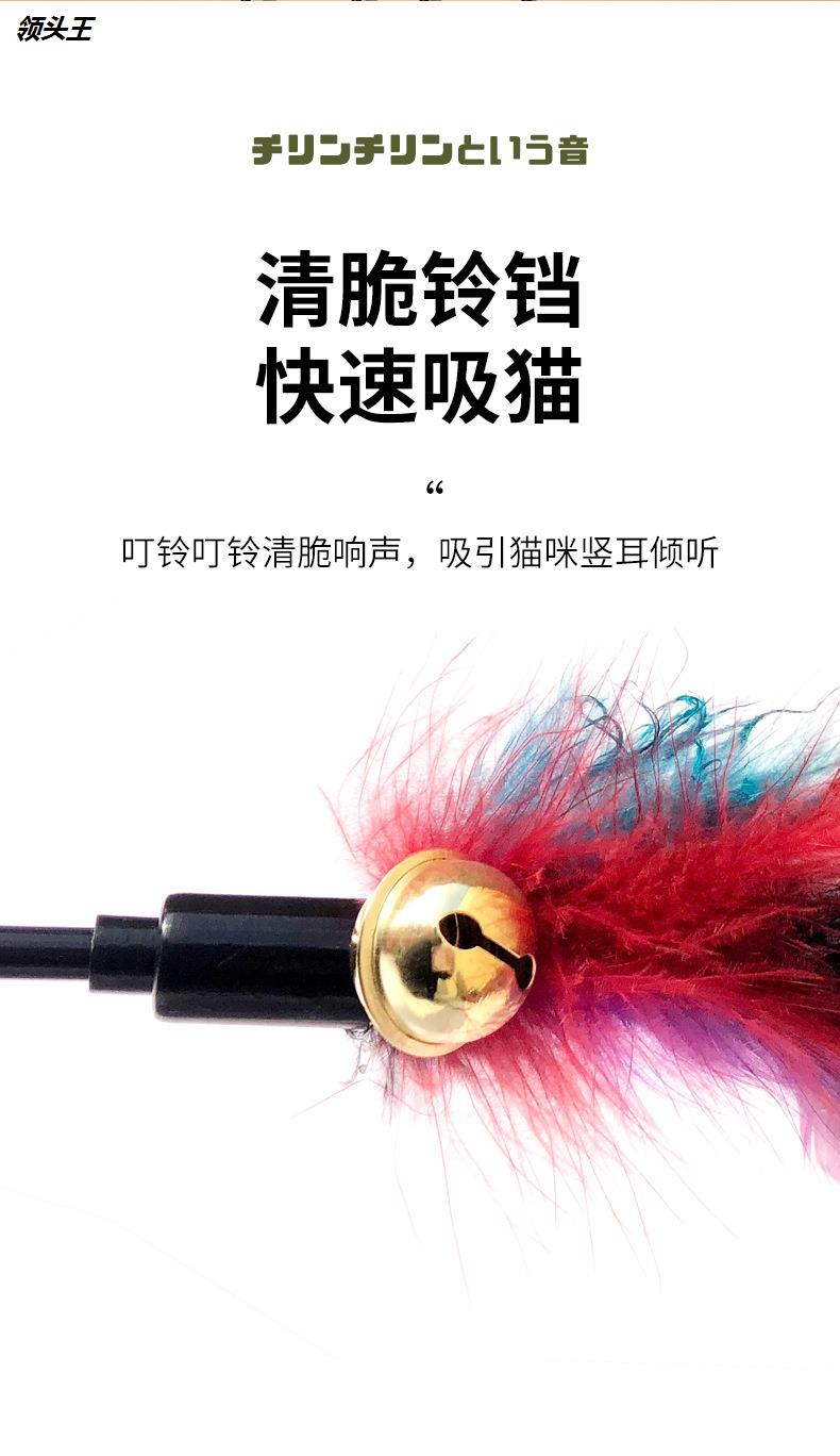 厂家羽毛逗猫棒神器宠物猫咪爱超长50CM软杆铃铛发声玩领头王