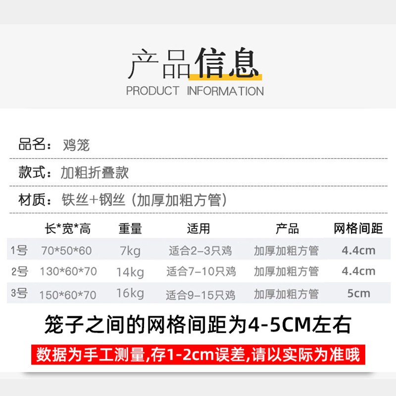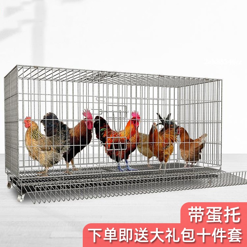 茨格曼 【带蛋托】鸡笼子家用鸭笼鹅笼养鸡笼大号特大号自动清粪接蛋折叠养殖笼鸡舍铁丝网鸭狗笼 加粗加固 70*50*63【适合2-3只鸡】