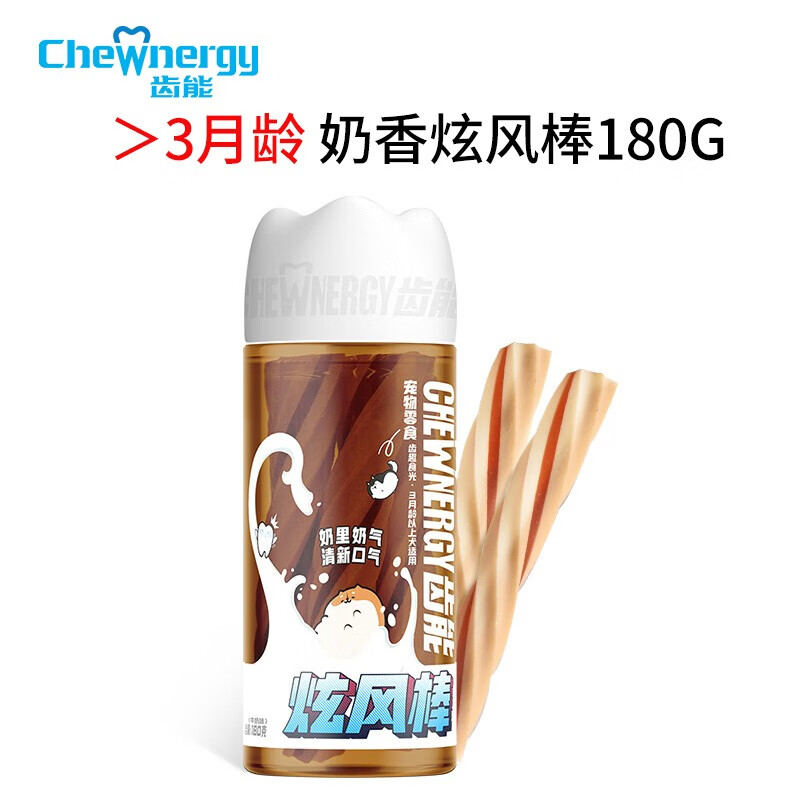 齿能(CHEW NERGY)狗零食 小型成犬软磨棒 宠物狗狗咬胶磨牙棒训练奖励骨头通用 炫风棒180g/罐