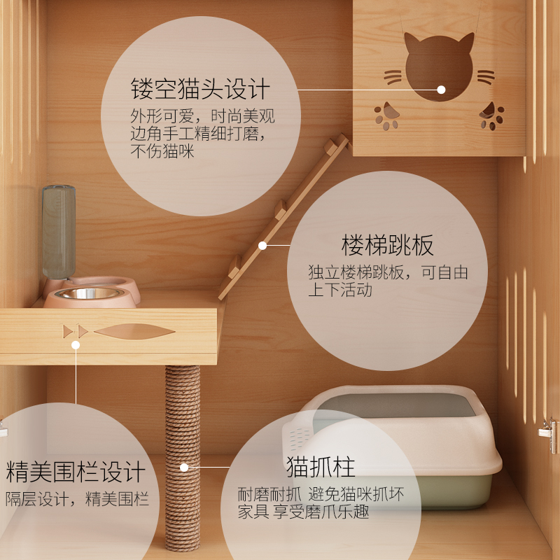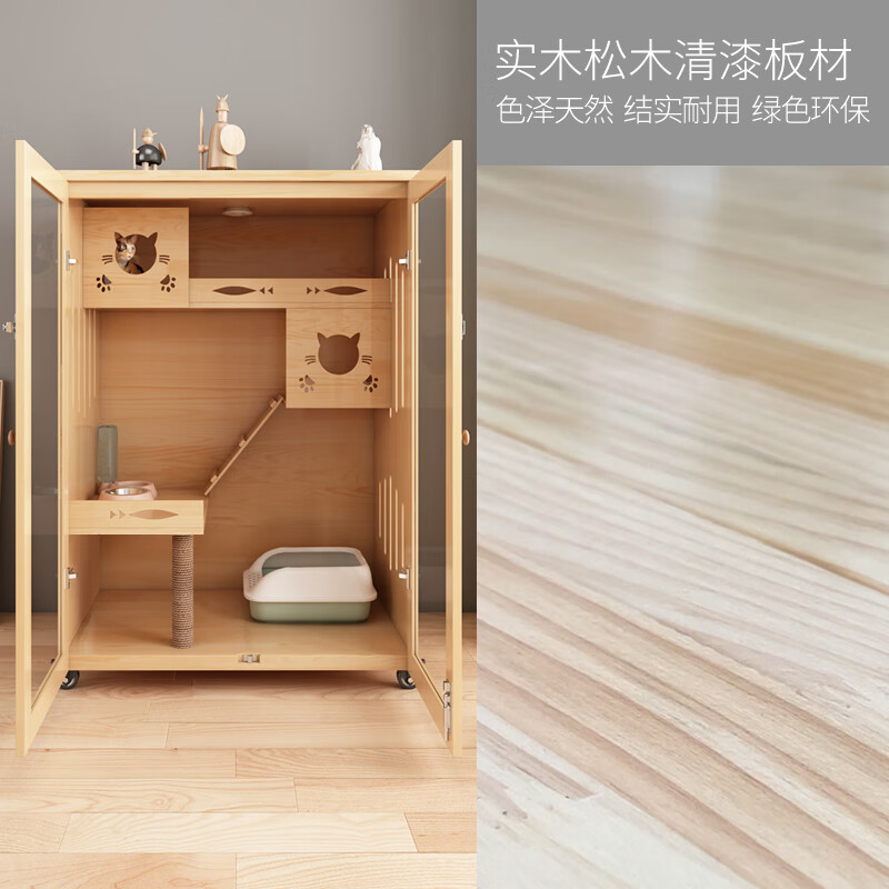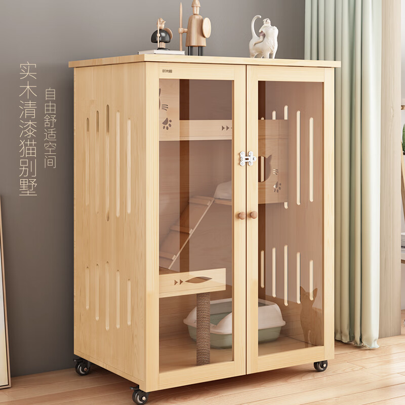 时光圈猫笼猫窝实木清漆猫别墅猫笼子猫柜宠物房屋120*90*60cmSM-G1296B