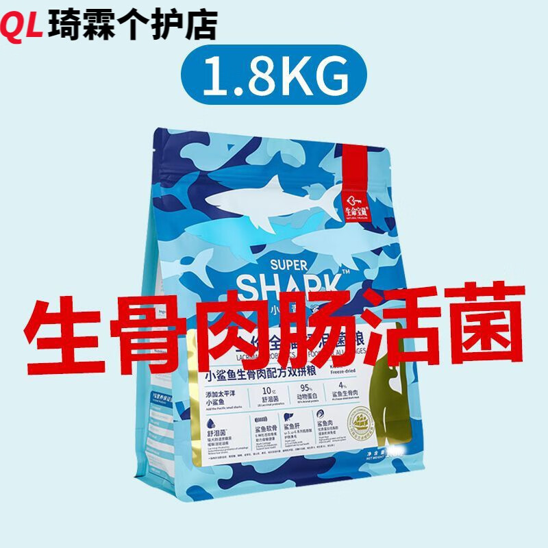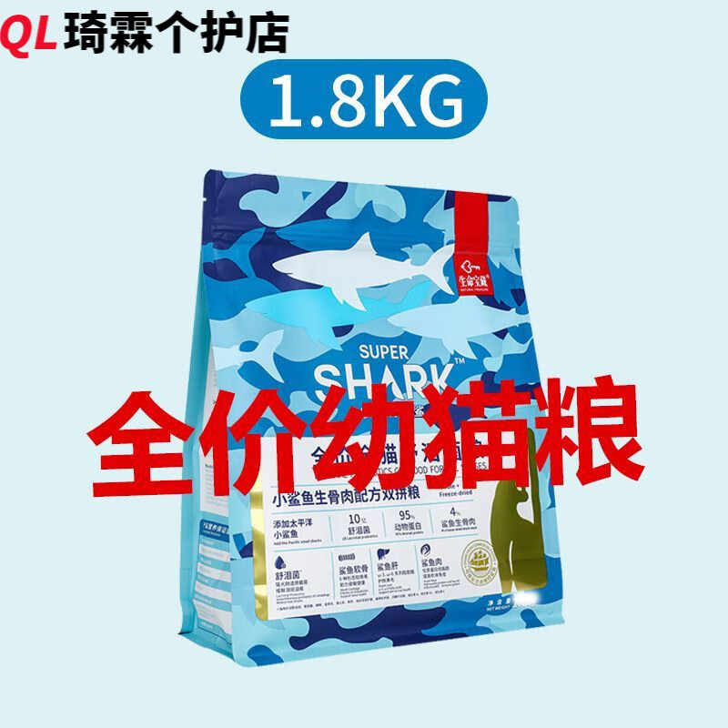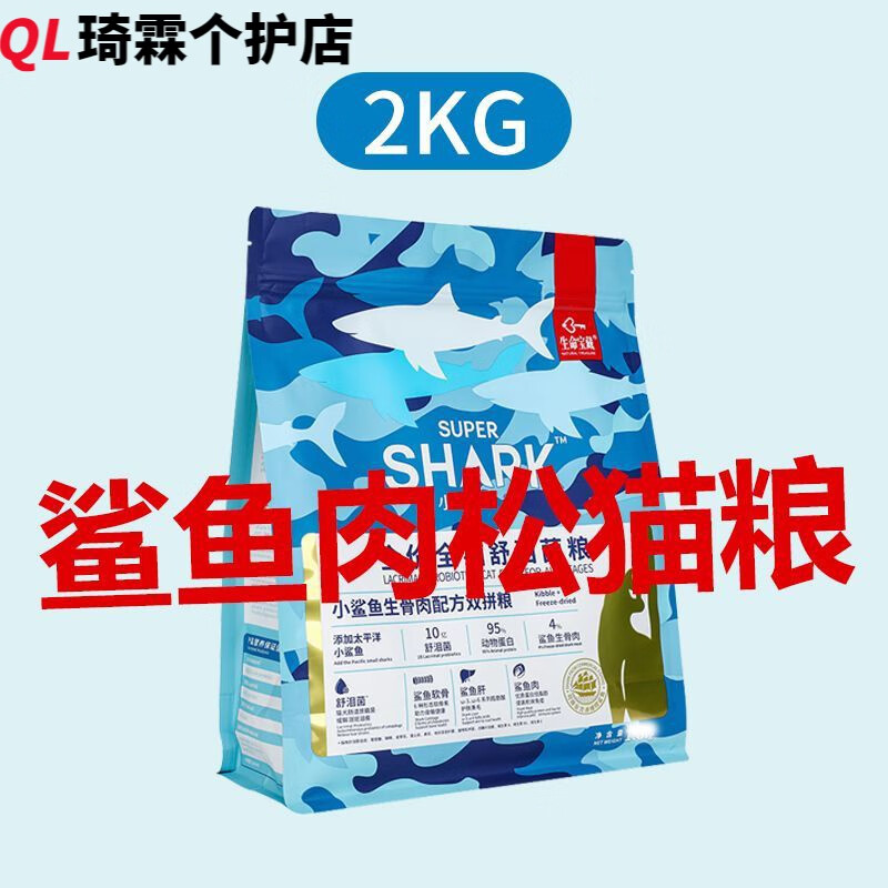 小青鲨猫粮猫咪专用成猫幼猫无谷生骨肉全阶段增肥冻干猫粮通用 鲨鱼肉松猫粮 2kg 1桶 囎鎹猫条10支