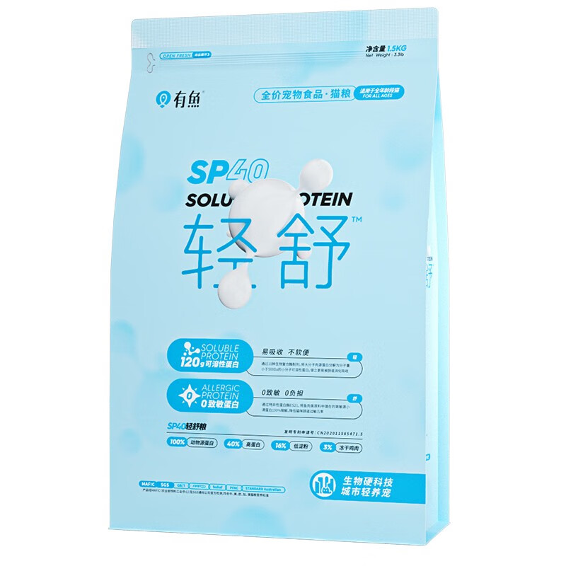 有鱼轻舒粮SP40成猫幼猫粮减轻便臭蓝猫英短布偶全阶段全价冻干猫干粮【1.5kg/3kg/6kg】 正装-1.5kg 2包