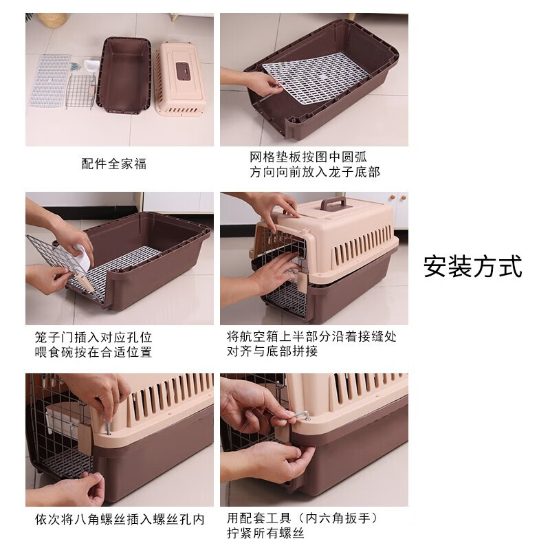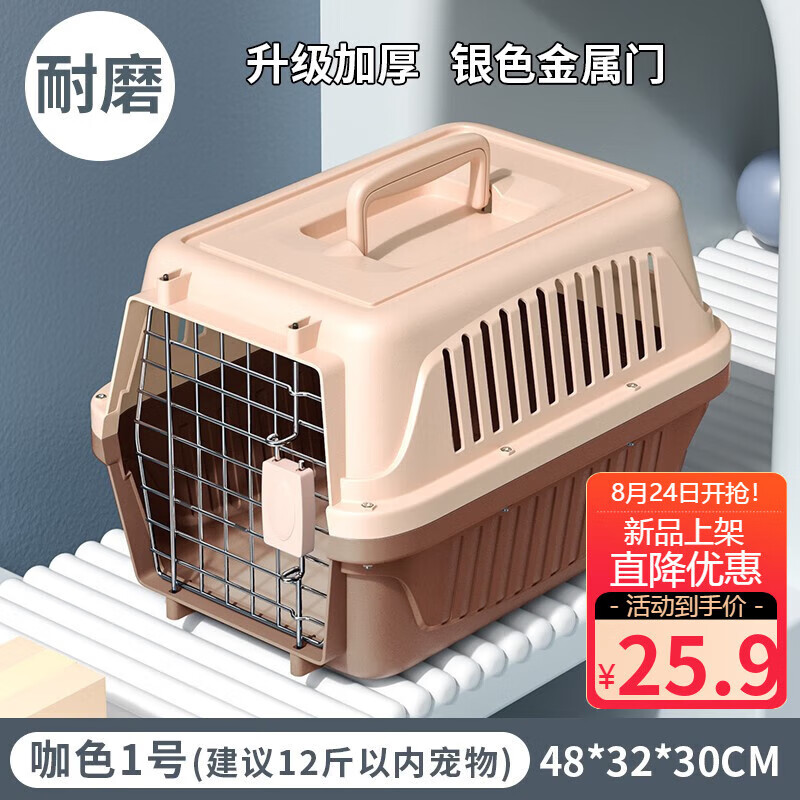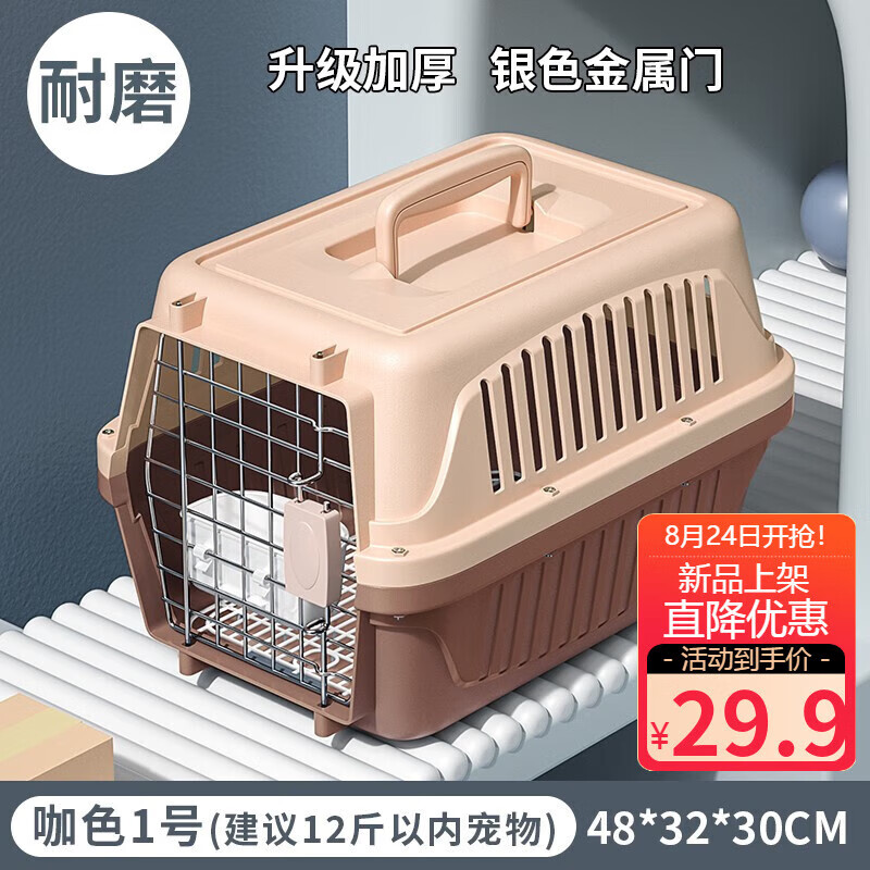 徘初贝意品宠物航空箱猫太空舱猫包猫咪外出用品猫笼子狗托运箱外出便 加厚1号-咖色-银色金属门