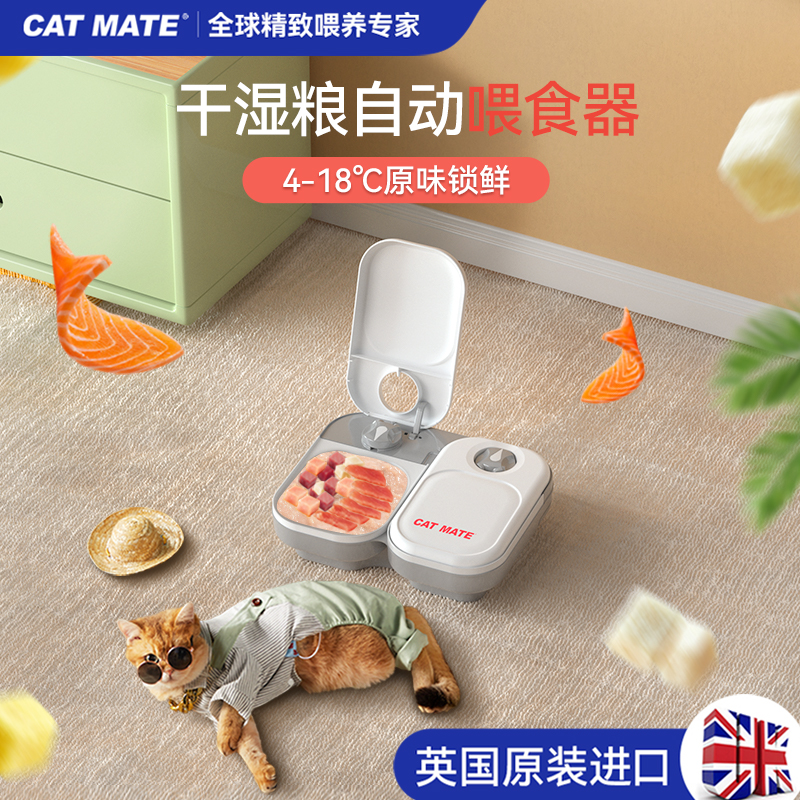 CATMATE进口Catmate宠物智能自动喂零食器湿粮罐头生骨肉定时投食喂猫狗 双盒48h定时开盖(不带蓝冰)